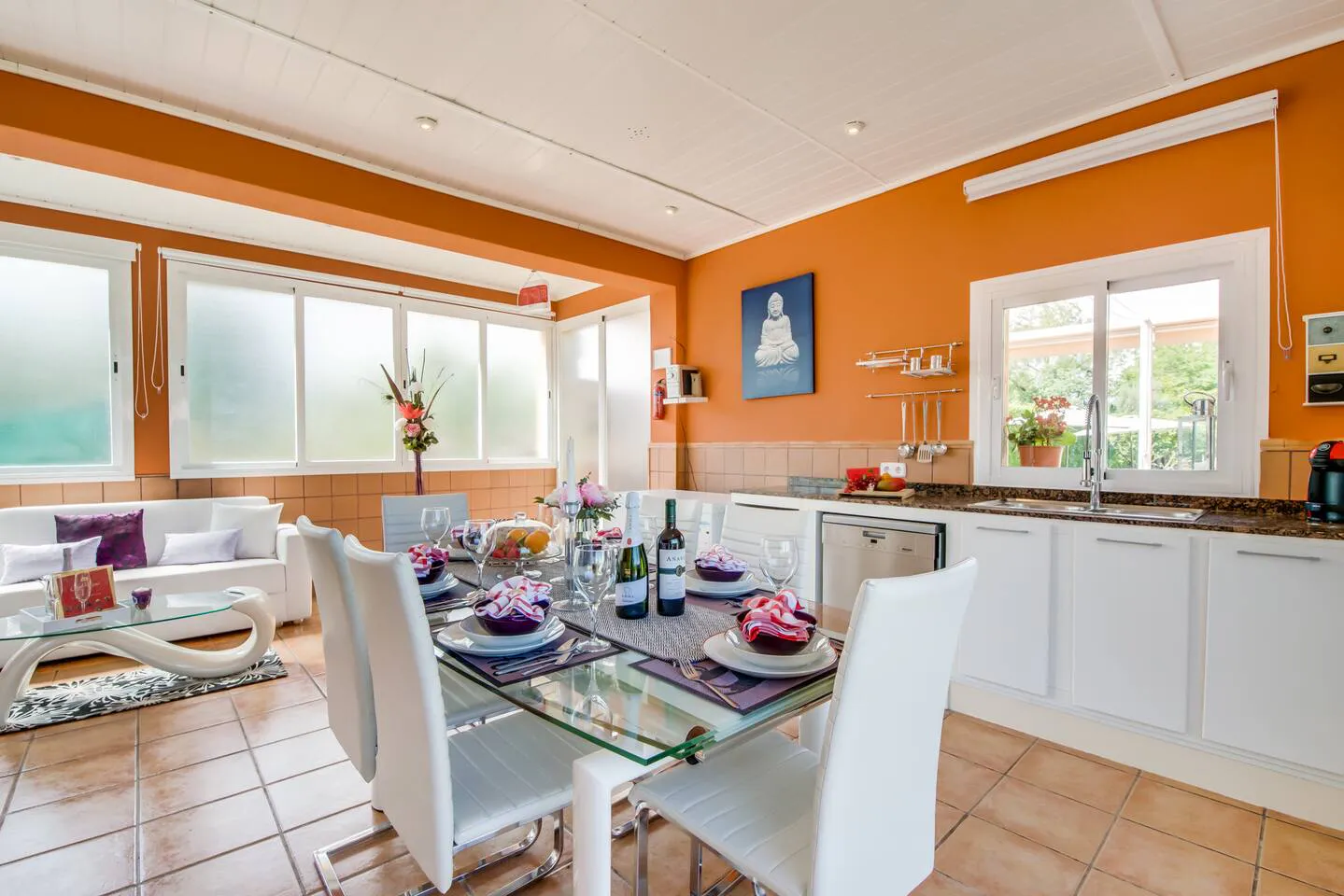 La Finca This holiday home's standout feature is the private pool. Boasting 4 bedrooms and 3 bathrooms with a bath, this spacious holiday home has a well-fitted kitchen and a terrace. The holiday home also features a barbecueRoom 1 Double room with two single beds:Immerse yourself in the tranquillity of this cosy double room. With two single beds, it is perfect for friends or family who wish to share the space without sacrificing comfort. Natural light floods the room through the window with access to the garden creating a serene and relaxing atmosphere. The decoration is simple and elegant, ensuring a pleasant and comfortable stay.Room 2 Family room with king-size bed:Experience spaciousness in our star room, equipped with an extra-large family bed. The room, the largest in the house, is bathed in natural light thanks to its generous windows, creating a warm and bright atmosphere. Enjoy a unique stay in this space designed for your well-being and comfort.Room 3 Double room with two single beds:Enjoy this spacious double room equipped with two single beds. This room offers a bright and spacious atmosphere. The large windows let in plenty of natural light, enhancing the warmth and comfort of the space.Room 4 Double room with two single beds:Relax in this spacious double room, which features two single beds. This room offers the ideal balance between space and comfort. It has a window that illuminates the room with natural light creating a cosy and peaceful environment.Bathroom included (6m2)El interior cocina, sala